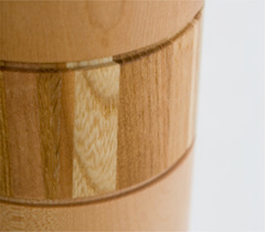 木材には1つひとつ違った特徴があります。色や木目はもちろん、堅さや重さ、耐食性や経年変化などそれぞれに性格があります。単調な樹種で作られたモノよりも、様々な樹種の風合いを味わってほしい。そんな想いから生まれたKINOKOTO のモノたちには、多様な樹種が醸し出す美しく艶やかな調和があります。暮らしの中でカラフルな木に包まれる愉しみを味わってください。
