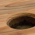 その節を丸く刳り貫き、植栽用のカップを入れました。